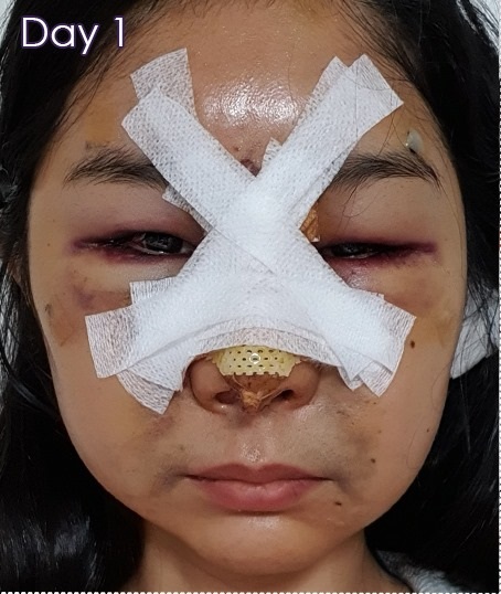 So you wake up the morning after your rhinoplasty. Maybe you’re a little groggy still. You shuffle to the bathroom and catch your reflection.