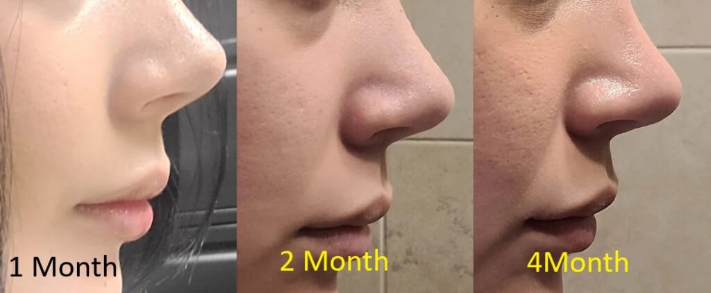 Right after rhinoplasty, your nose is seriously swollen. And here’s the tricky part: that swelling can actually push your tip upward temporarily, making it appear higher than where it’ll ultimately settle. As swelling resolves over 6 to 12 months, your tip gradually descends to its true position. If the underlying support isn’t adequate, what looked like a great result at three months might reveal tip drop by the one-year mark.